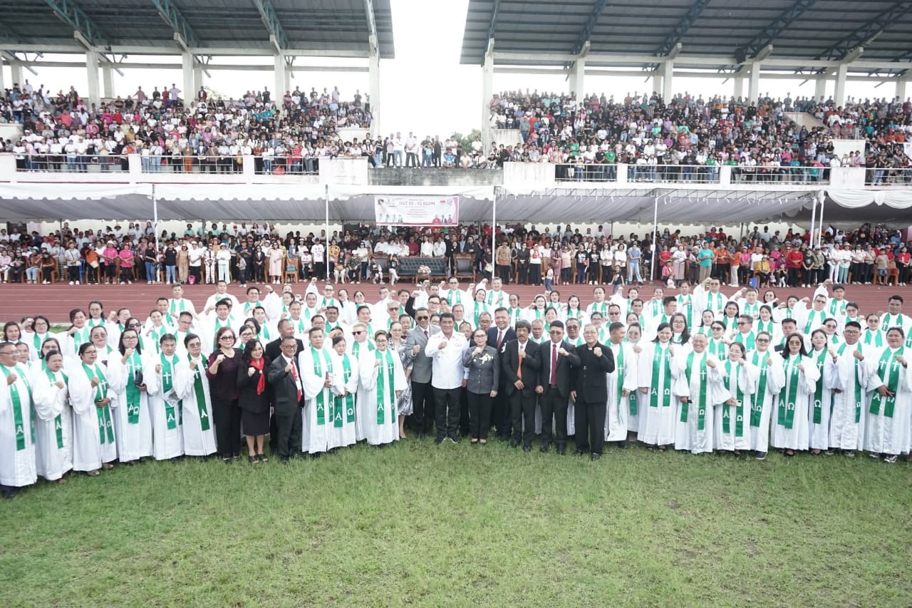 Turut hadir dalam kegiatan ini Ketua Umum Pucuk Pimpinan KGPM Gbl. Frangky Londa, S.Th., M.A., para gembala se-KGPM, Ketua Umum Panitia, serta ribuan jemaat dan undangan yang memadati stadion dalam suasana penuh sukacita, persaudaraan, dan kebersamaan iman.