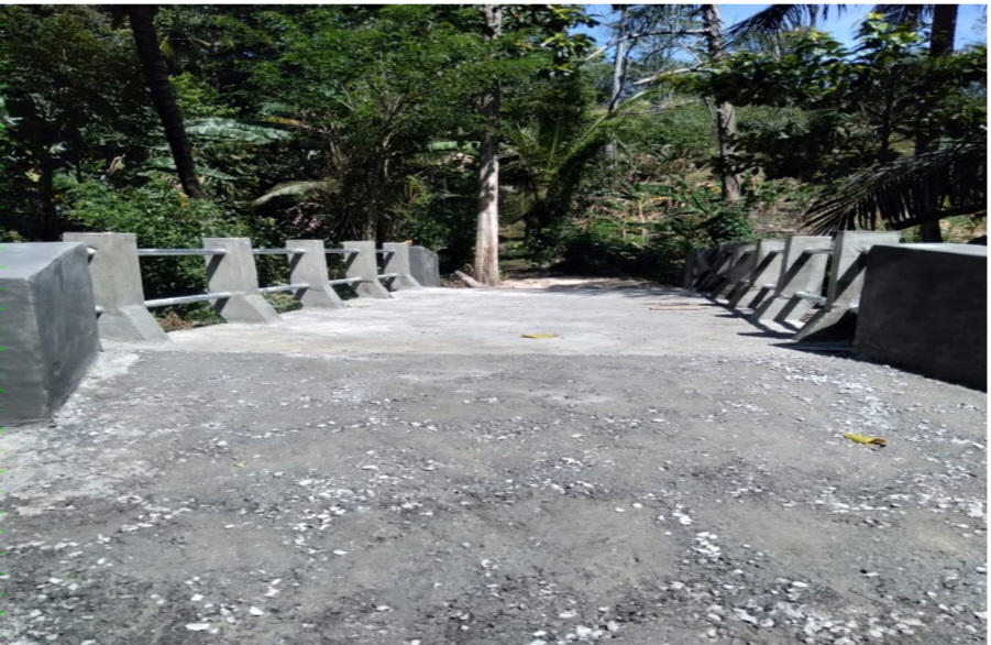 Jembatan dengan bentangan Volume Lebar 3 Meter Panjang 4 Meter dengan Konstruksi Modern menggunakan 6 titik sondir dengan kedalaman 1 Meter yang rampung dikerjakan hanya dalam waktu 21 Hari kerja.
