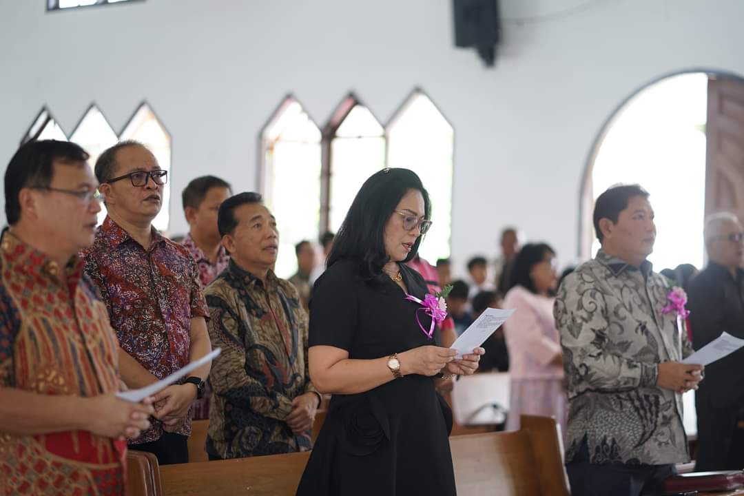 MINAHASA,POSTKOTANEWS.CO.ID – Bupati Minahasa Dr. Jemmy Stani Kumendong, MSi dan Sekretaris Daerah Dr. Lynda Watania, MM, MSi menghadiri Ibadah Syukur HUT Ke-61 Jemaat GMIM Moria Sasaran Wilayah Tondano , Minggu (19/5/2024)