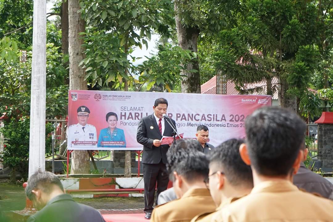 Pada upacara tersebut, Pj Bupati Minahasa membacakan sambutan tertulis Kepala Badan Pembinaan Ideologi Pancasila (BPIP). Hamim mengatakan, Pancasila sebagai suatu keyakinan dan pendirian yang asasi harus terus diperjuangkan.