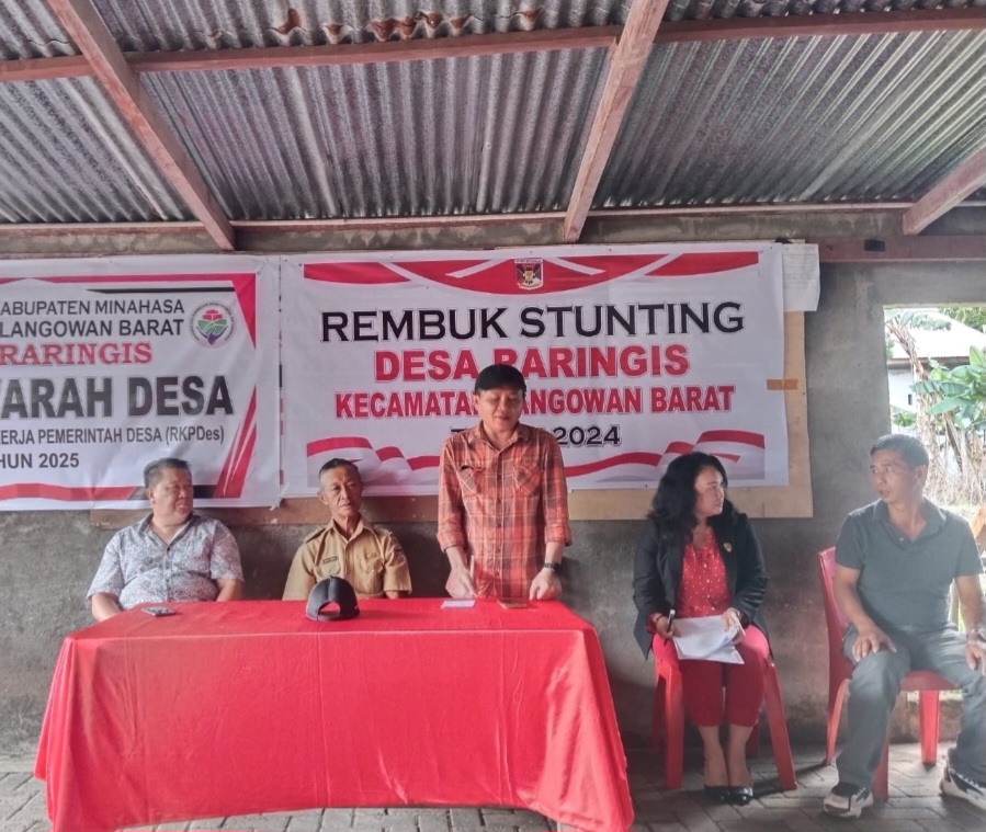 MINAHASA,-POSTKOTANEWS.CO.ID,- Bertempat di Kantor Hukumtua, Jaga 2 Desa Raringis Kecamatan Langowan Barat, Pemerintah Desa Raringis menggelar Rembuk Stunting, Senin (24/06-2024).
