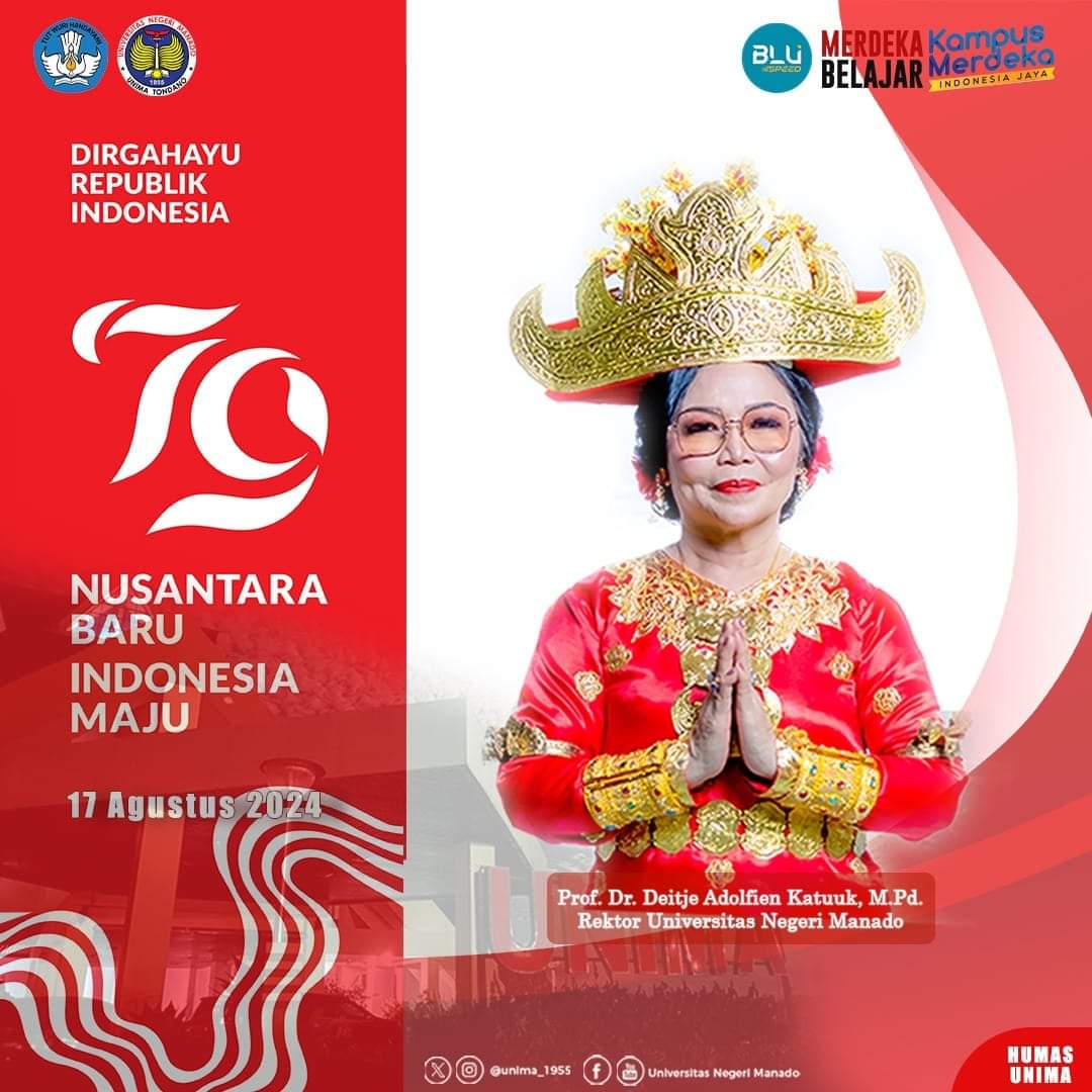 POSTKOTANEWS.CO.ID  –  Tahun ini Indonesia merayakan HUT RI  ke-79, Civitas Universitas Negeri Manado (UNIMA) melaksanakan Upacara Bendera di lapangan UNIMA,Sabtu 7 Agustus 2024.
