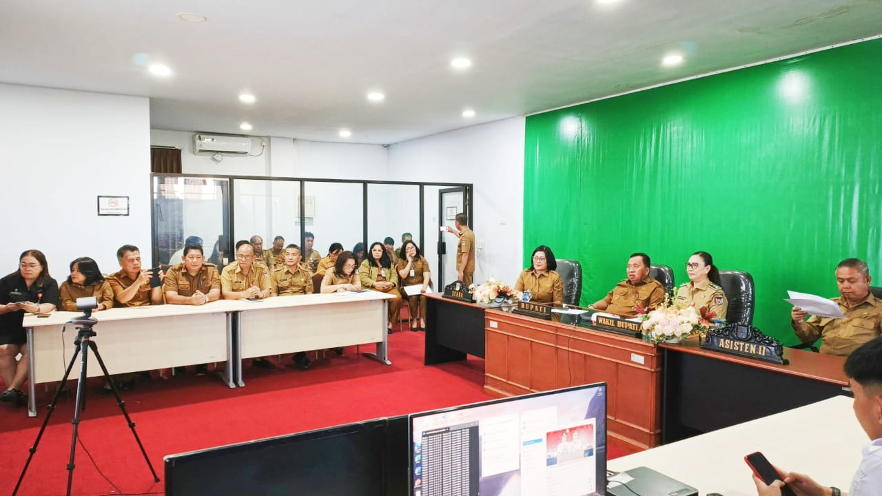 MINAHASA,POSTKOTANEWS.CO.ID — Bupati Minahasa Robby Dondokambey, S.Si., M.AP, bersama Wakil Bupati Vanda Sarundajang, S.S., mengikuti Rapat Koordinasi Pengendalian Inflasi yang dirangkaikan dengan Evaluasi Dukungan Pemerintah Daerah terhadap Program Nasional 3 Juta Rumah. Kegiatan ini digelar secara virtual dan dipimpin oleh Sekretaris Jenderal Kemendagri, Tomsi Tohir, melalui Zoom Meeting dari Ruang Command Center Kantor Bupati Minahasa, Senin (14/7/2025).