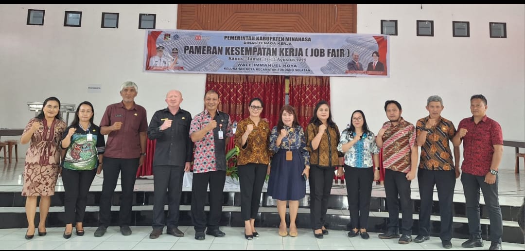MINAHASA,POSTKOTANEWS.CO.ID — Pemerintah Kabupaten Minahasa melalui Dinas Tenaga Kerja menyelenggarakan Pameran Kesempatan Kerja (Job Fair) Tahun 2025 yang berlangsung pada 14–15 Agustus 2025 di Gedung Serbaguna Wale Imanuel Koya, Tondano.