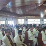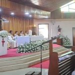 Ibadah kudus ini dipimpin langsung oleh Uskup Keuskupan Manado, Mgr. Estephanus Rolly Untu, MSC, serta dihadiri sekitar 40 pastor, 94 frater, 50 suster, dan kurang lebih 350 umat.