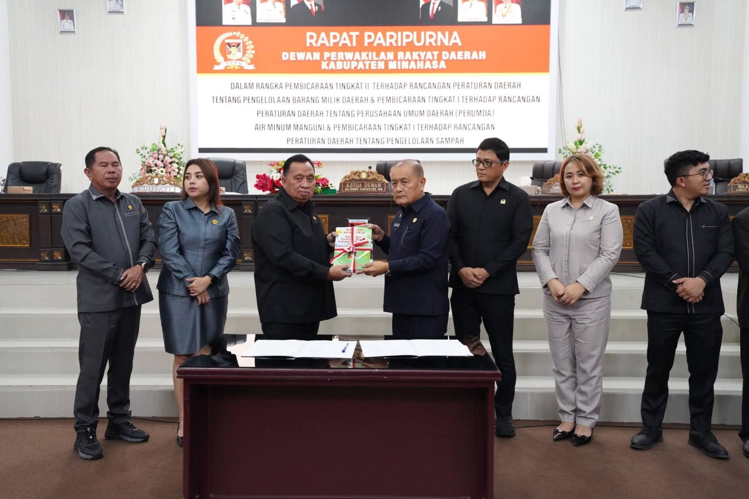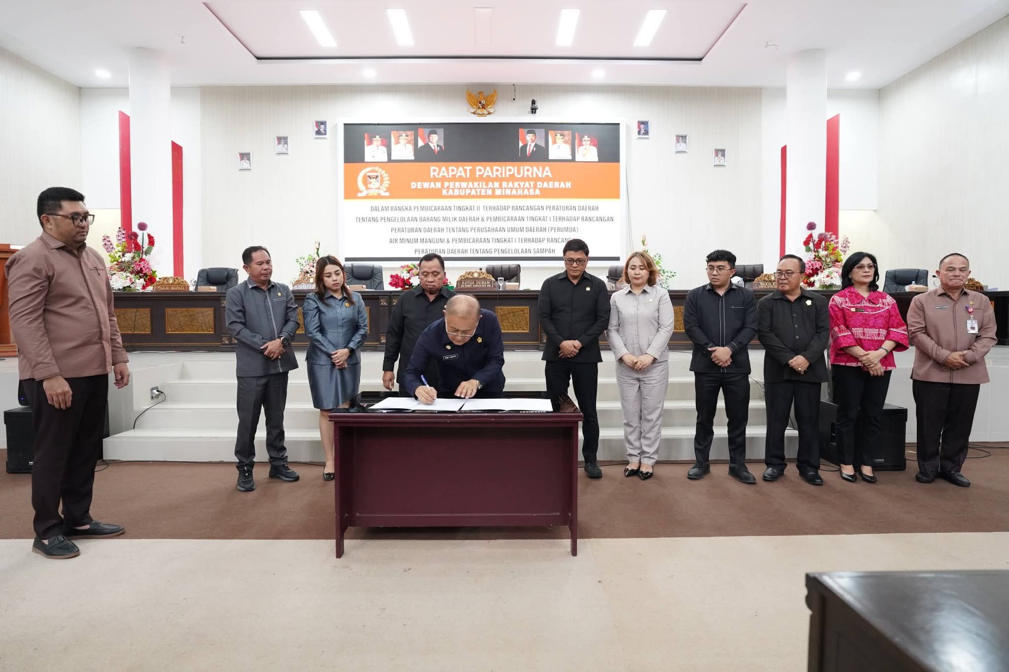 Rapat Paripurna ini dalam rangka pembahasan tingkat II terhadap rancangan peraturan daerah (Ranperda) tentang pengelolaan barang milik daerah dan pembahasan tingkat I terhadap ranperda tentang Perusahaan Daerah (Perumda) Air Minum Manguni dan pembicaraan tingkat I terhadap ranperda tentang pengelolaan sampah.