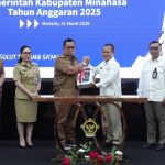 MINAHASA POSTKOTANEWS.CO.ID Manado – Bupati Minahasa, Dr. Robby Dondokambey, S.Si., M.A.P., menyerahkan Laporan Keuangan Pemerintah Daerah (LKPD) unaudited Tahun Anggaran 2025 kepada Badan Pemeriksa Keuangan (BPK) Perwakilan Provinsi Sulawesi Utara, Selasa (31/03).