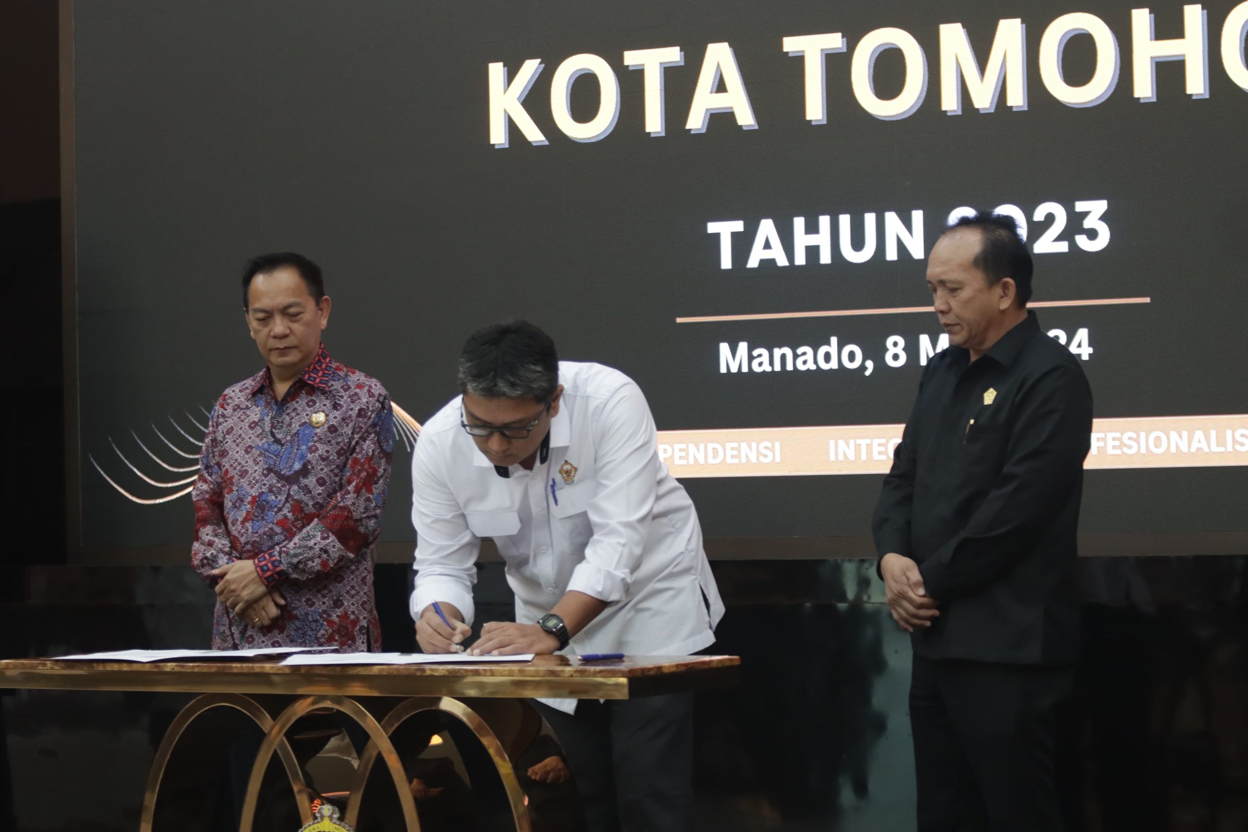 Diketahui Pemerintah Kota Tomohon mendapatkan opini wajar tanpa pengecualian (WTP) kesebelas berturut-turut Laporan Keuangan Pemerintah Daerah tahun anggaran 2023.